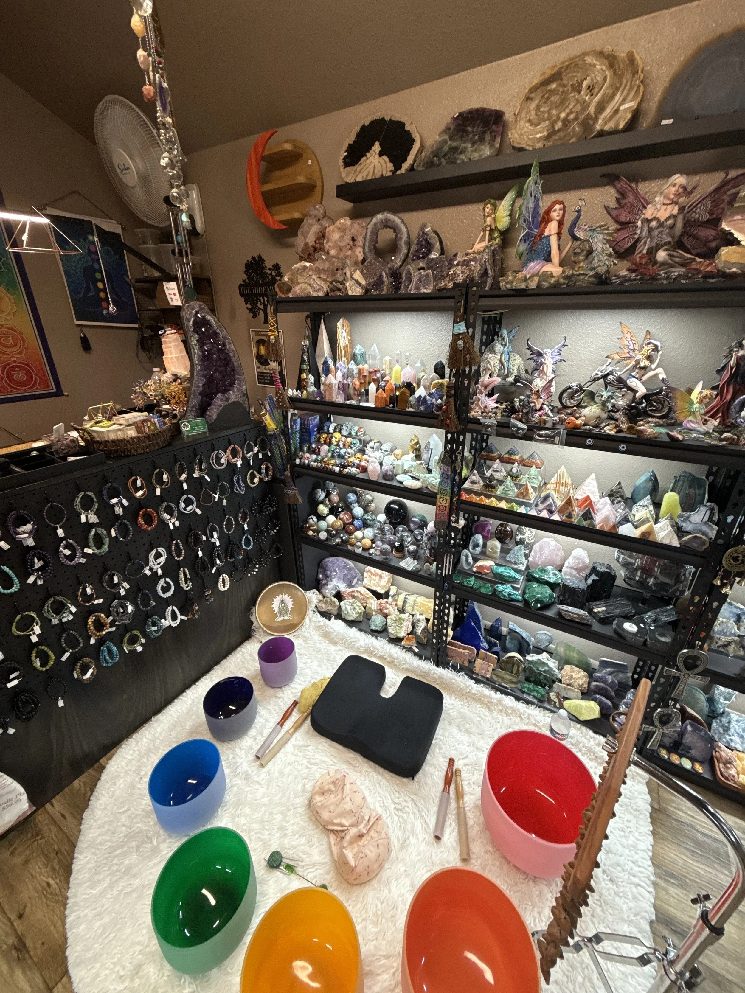 Expanded with sound-bowl sessions, oracle decks, and ritual kits.